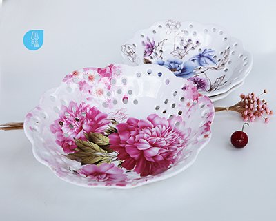 品(pin)名(míng):10吋翻口花(huā)形果盤  /  型号:2358  /  規格:25.4x25.4x5.7cm  /  裝(zhuang)箱數(shu):60  /  花(huā)色:喜事多(duo)